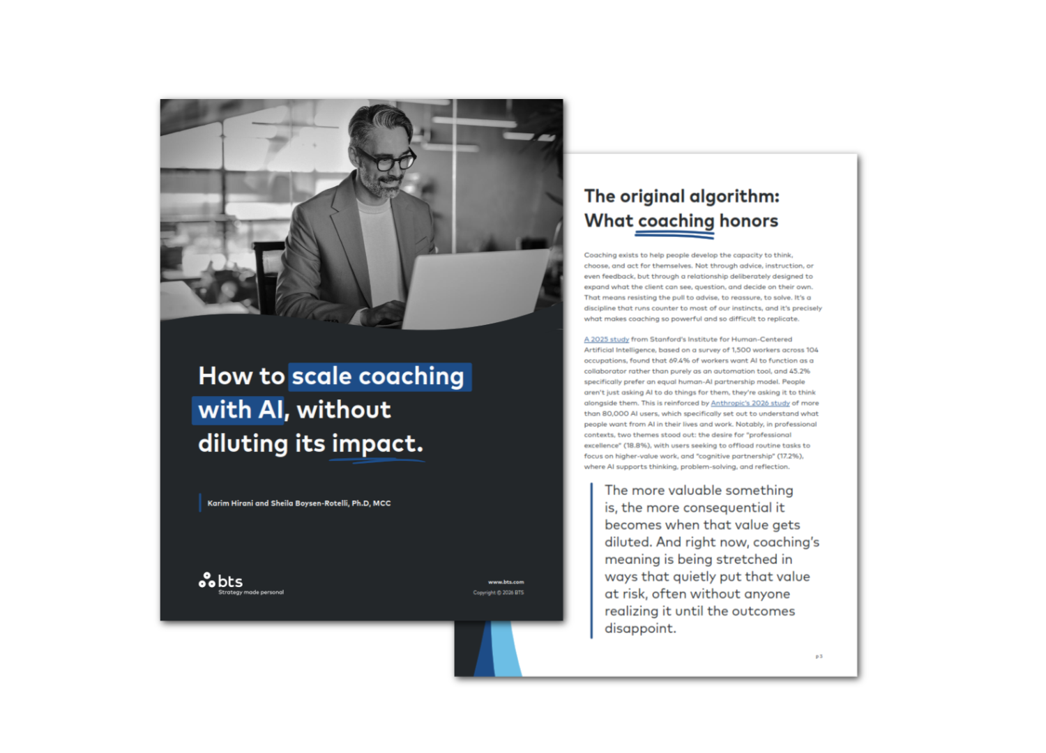 We built our own AI coaching companion at BTS. The process taught us more than we expected, not just about technology, but about coaching itself. About what makes it work, what makes it fail, and what gets lost when we stop being precise about what we're doing and why. This paper is an attempt to share what we learned, honestly and practically, so that the organizations and leaders investing in AI coaching can do it in a way that actually develops people.